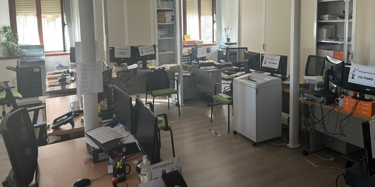Imagen de una oficina de la Administración de Justicia durante una jornada de huelga en 2023